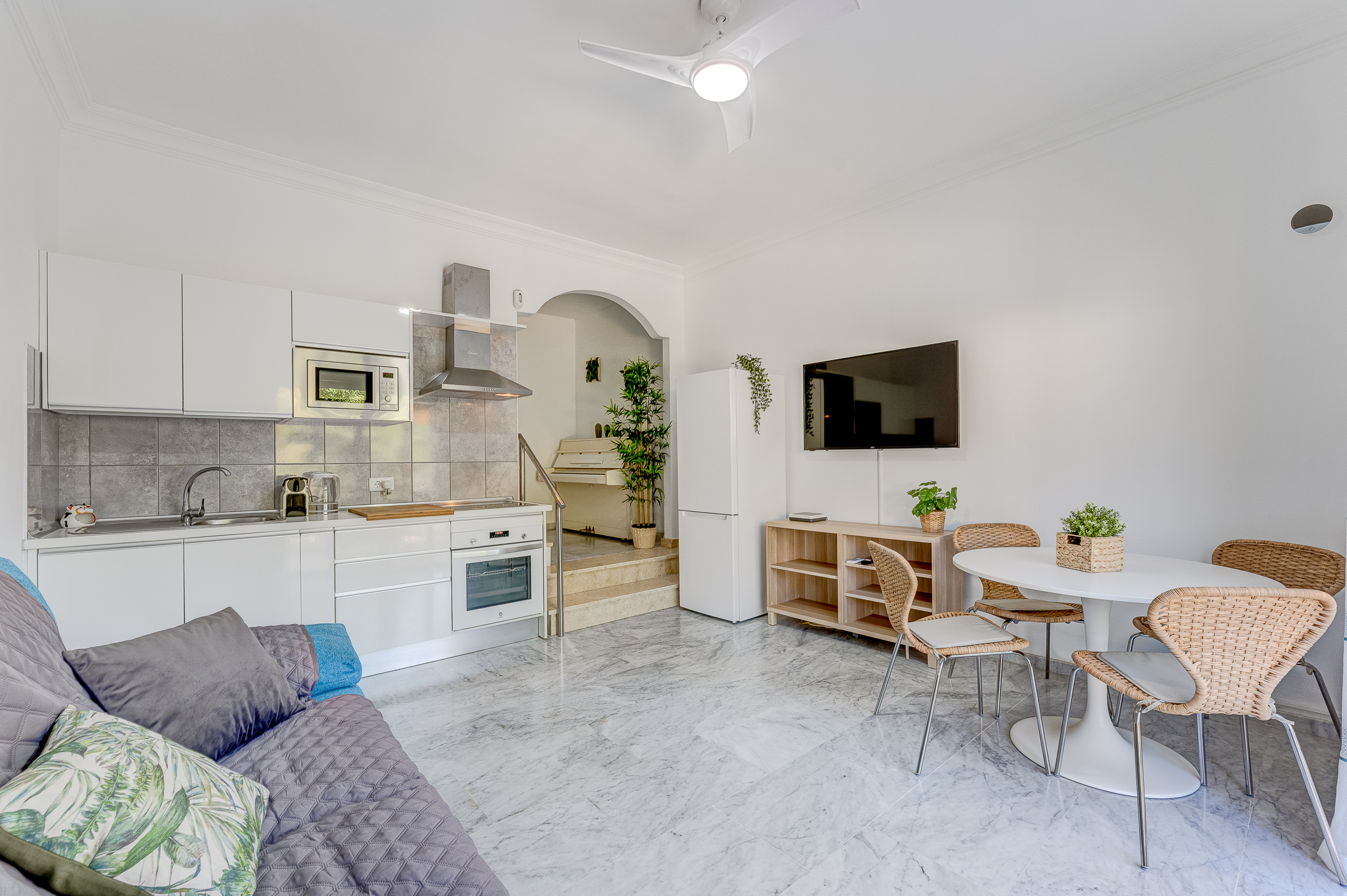 - Amenities: Air conditioning, Balcony/Terrace, Bathroom, Blackout curtains, Dinner table, Dishes & Utensils, Dishwasher, Fan, Flat-screen TV, Free public parking, Fridge, Garden view, General, Hairdryer, Iron & Board, Kettle, Kitchen, Microwave, Oven, Safe, Shower, Socket near the bed, Storage space for clothes, Toaster, Toilet, Washing machine, Wi-Fi, Wine glasses, Сoffee machine
