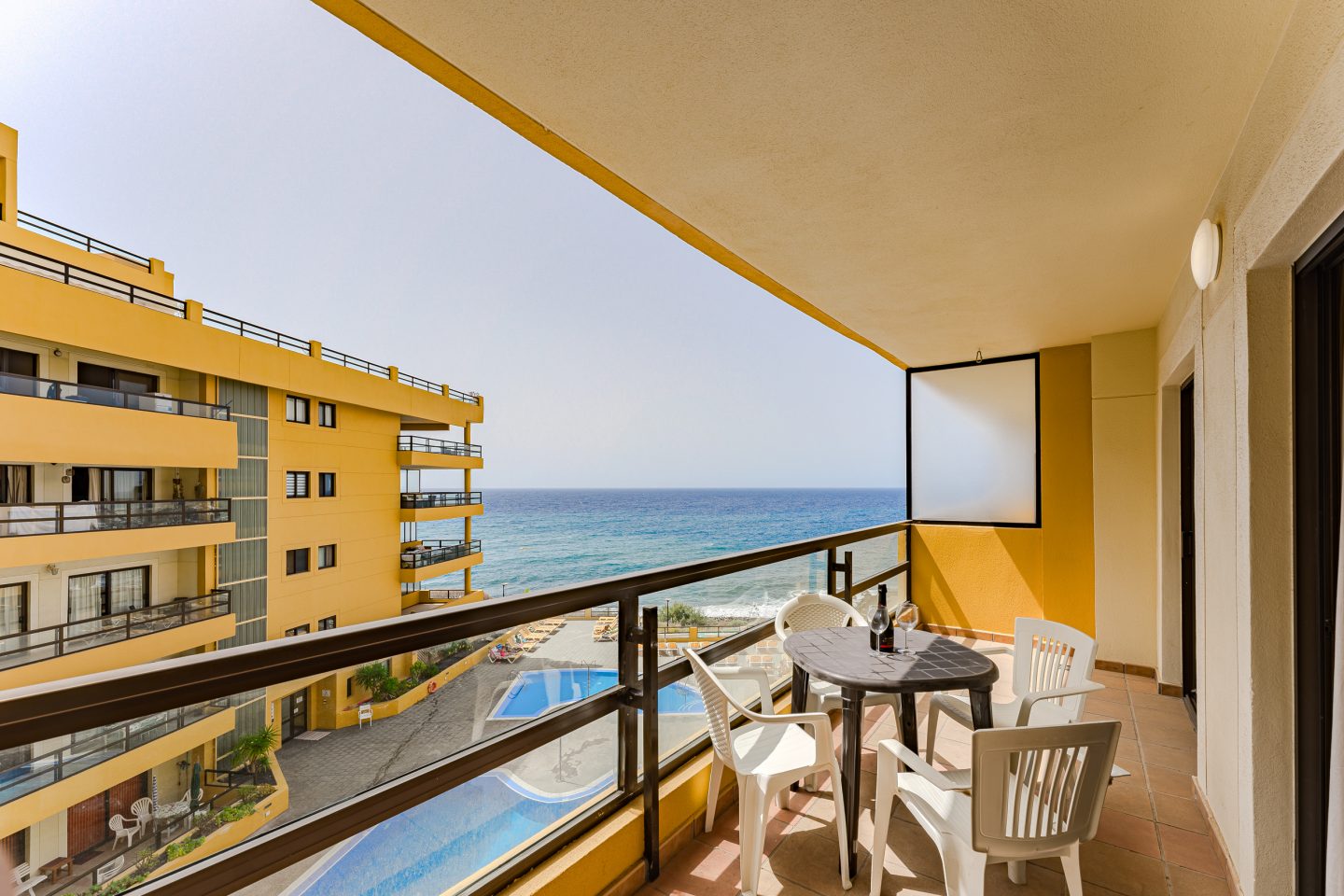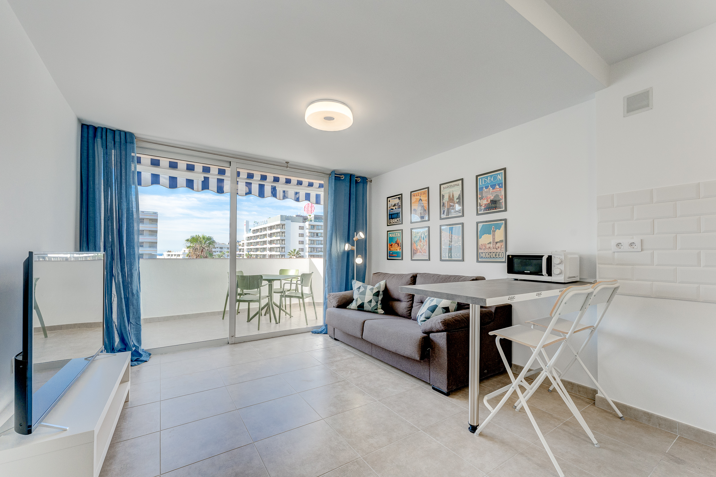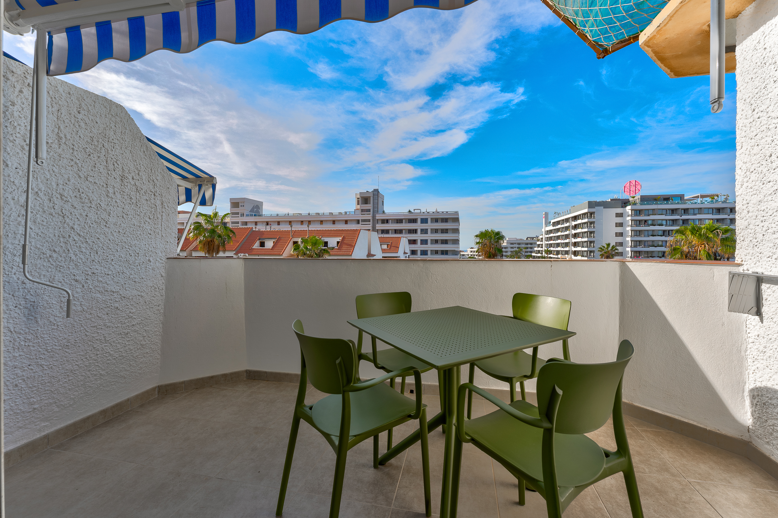 - Amenities: Air conditioning, All ages welcome, Baby cot, Balcony/Terrace, Bathroom, Blackout curtains, City view, Communal pool, Cooker, Dinner table, Dishes & Utensils, Elevator, Flat-screen TV, Free public parking, Freezer, Fridge, General, Hairdryer, High chair for a child, Iron & Board, Kettle, Kitchen, Linen, Media & Technology, Microwave, Miscellaneous, Open all year, Outdoor features, Outdoor Furniture, Outdoor swimming pool, Parking space, Sea view, Shower, Socket near the bed, Storage space for clothes, Sun beds, Toaster, Toilet, Toilet paper, Towels, TV, Washing machine, Wi-Fi, Wine glasses, Сoffee machine