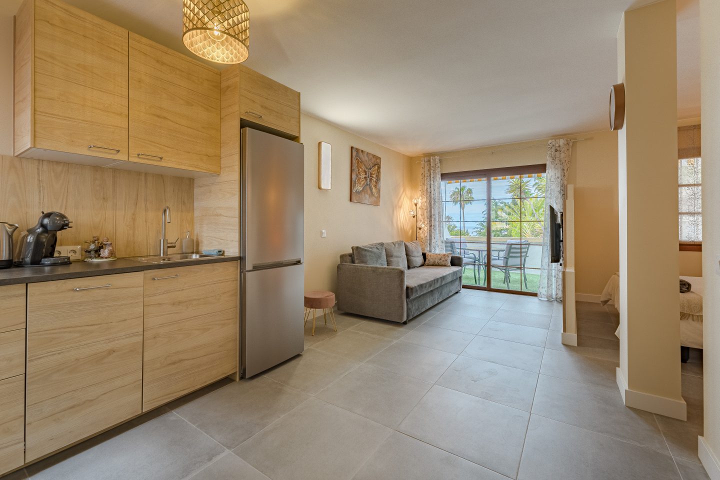 Beautiful apartment located in the most touristy area of Tenerife – Las Americas. It is the perfect place for your vacation on this amazing island. In our apartment, you will find a cozy living-dining room, a fully equipped kitchen, a bathroom, and a bedroom with two single beds. Here, you have all the necessary amenities […]